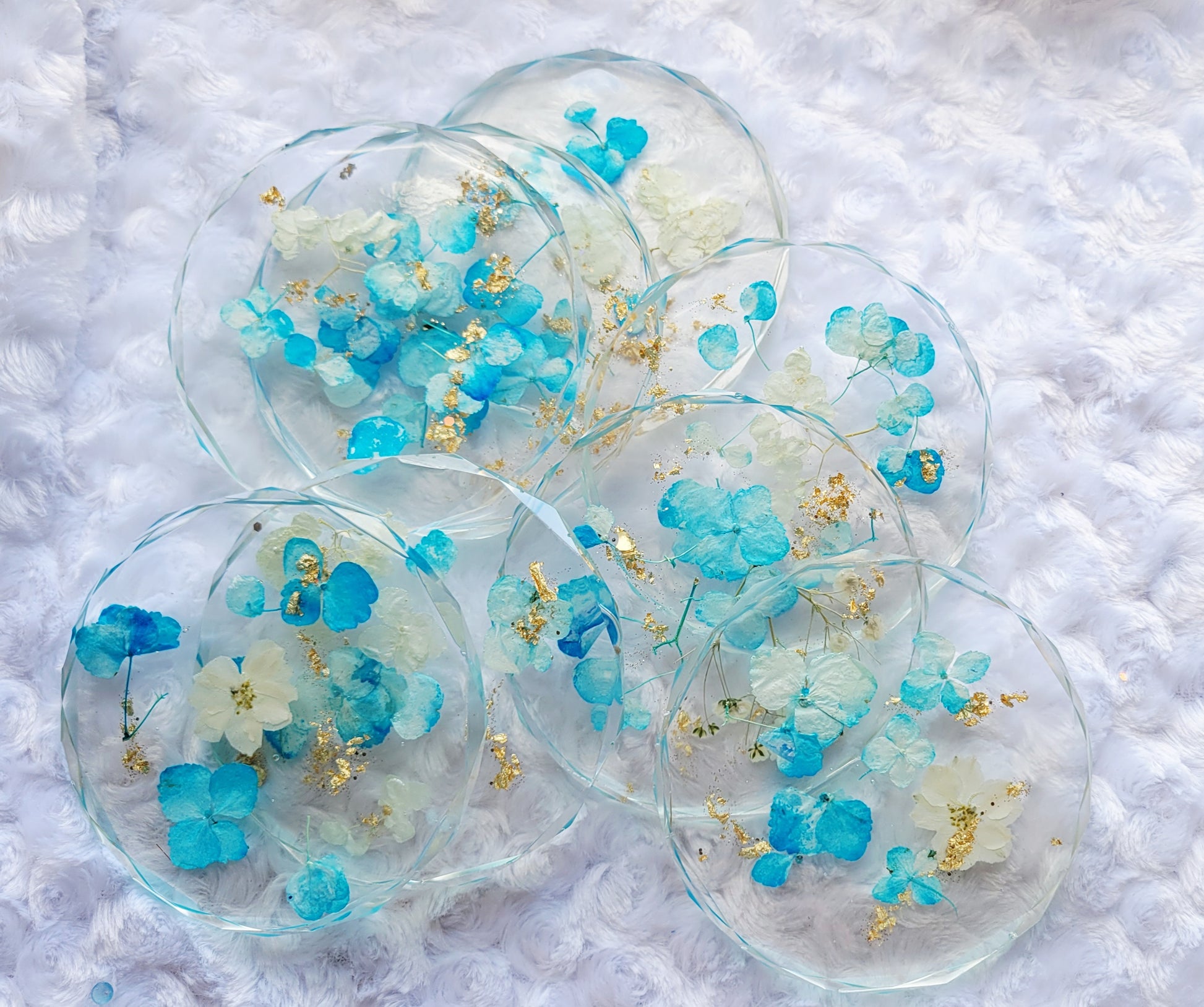 Add an elegant touch to your tablescape with our handmade Floral Coasters. Made using food-safe resin and real flowers, these beautiful coasters provide a sophisticated look.