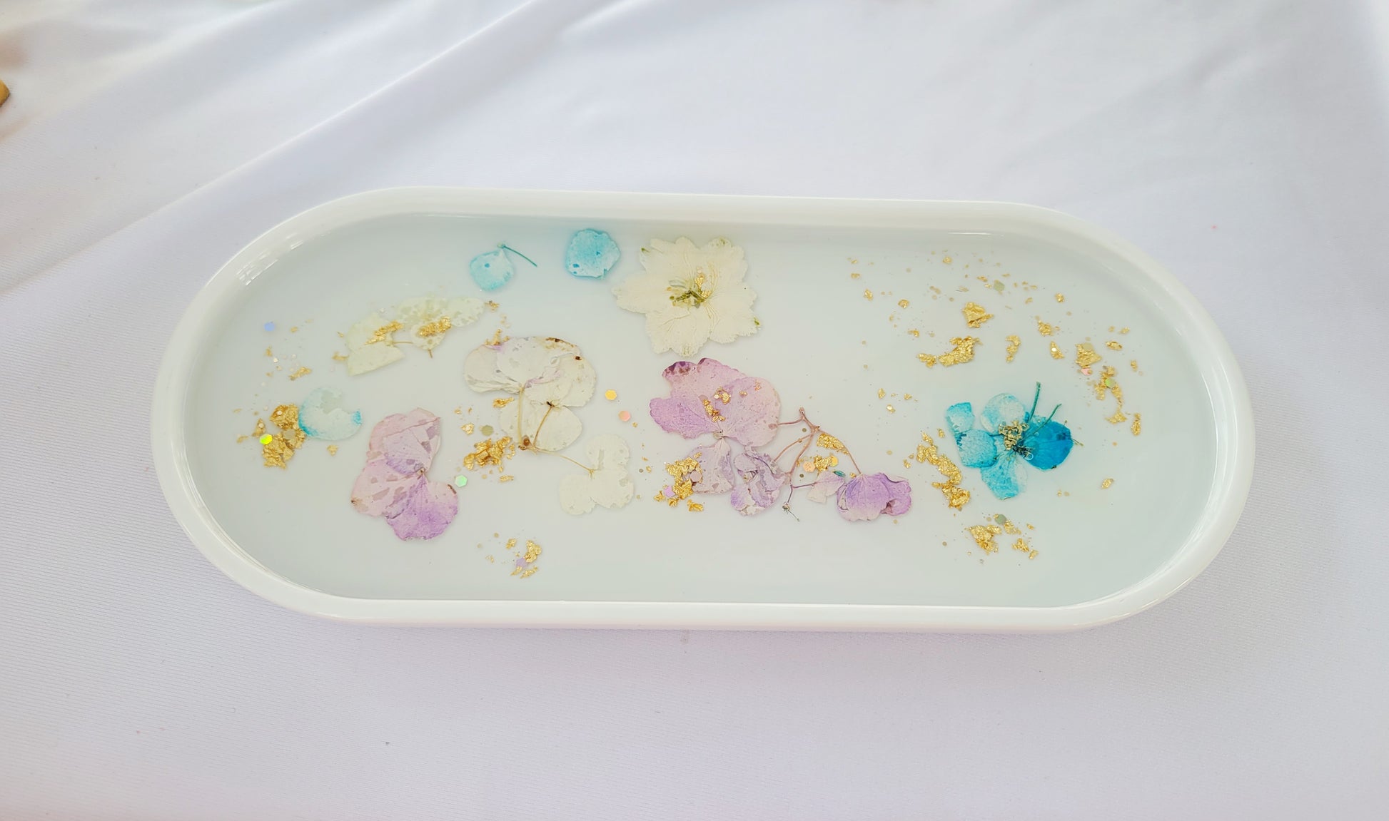 Floral Vanity Tray, made with real florals and food grade epoxy. Perfect for your colognes, perfumes or jewelry.