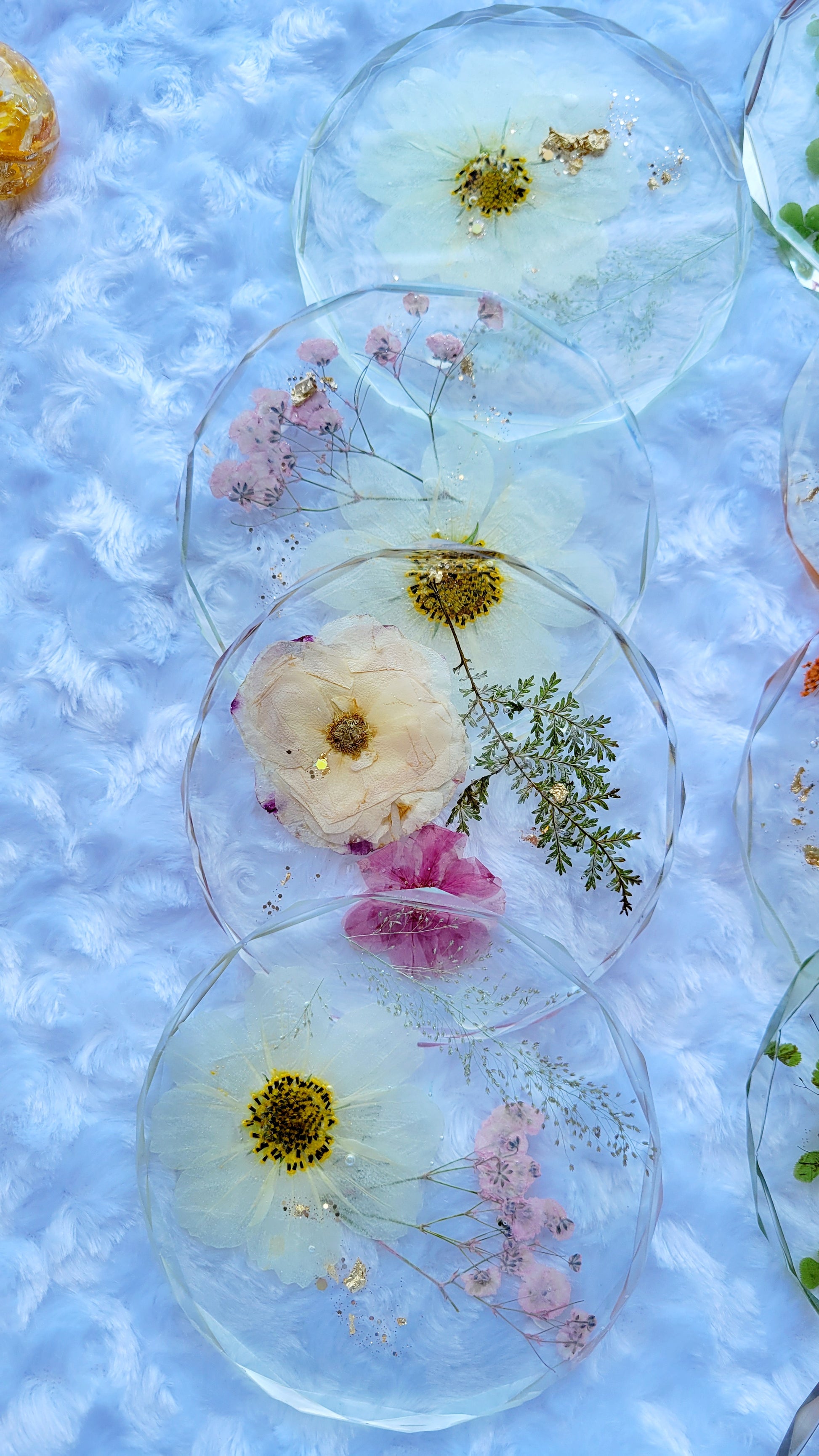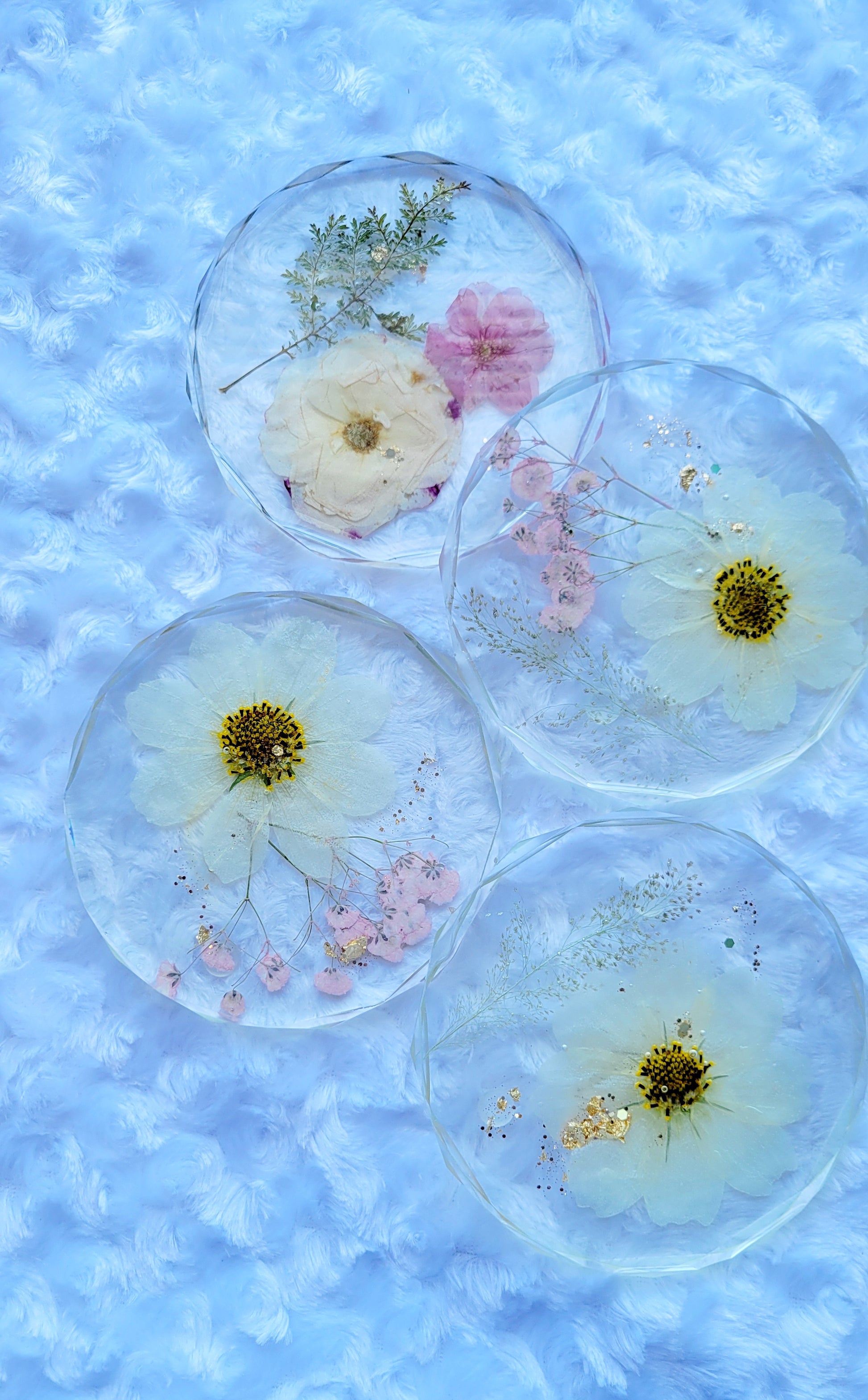 Add an elegant touch to your tablescape with our handmade Floral Coasters. Made using food-safe resin and real flowers, these beautiful coasters provide a sophisticated look.